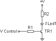Devrede TR1 sürücü NPN transistör, VControl transistöre işlemciden gelen ve genellikle TTL seviyelerinde kontrol gerilimi, R1 transistörün baz direnci, R2 ve Led1 örnek olarak yüktür.